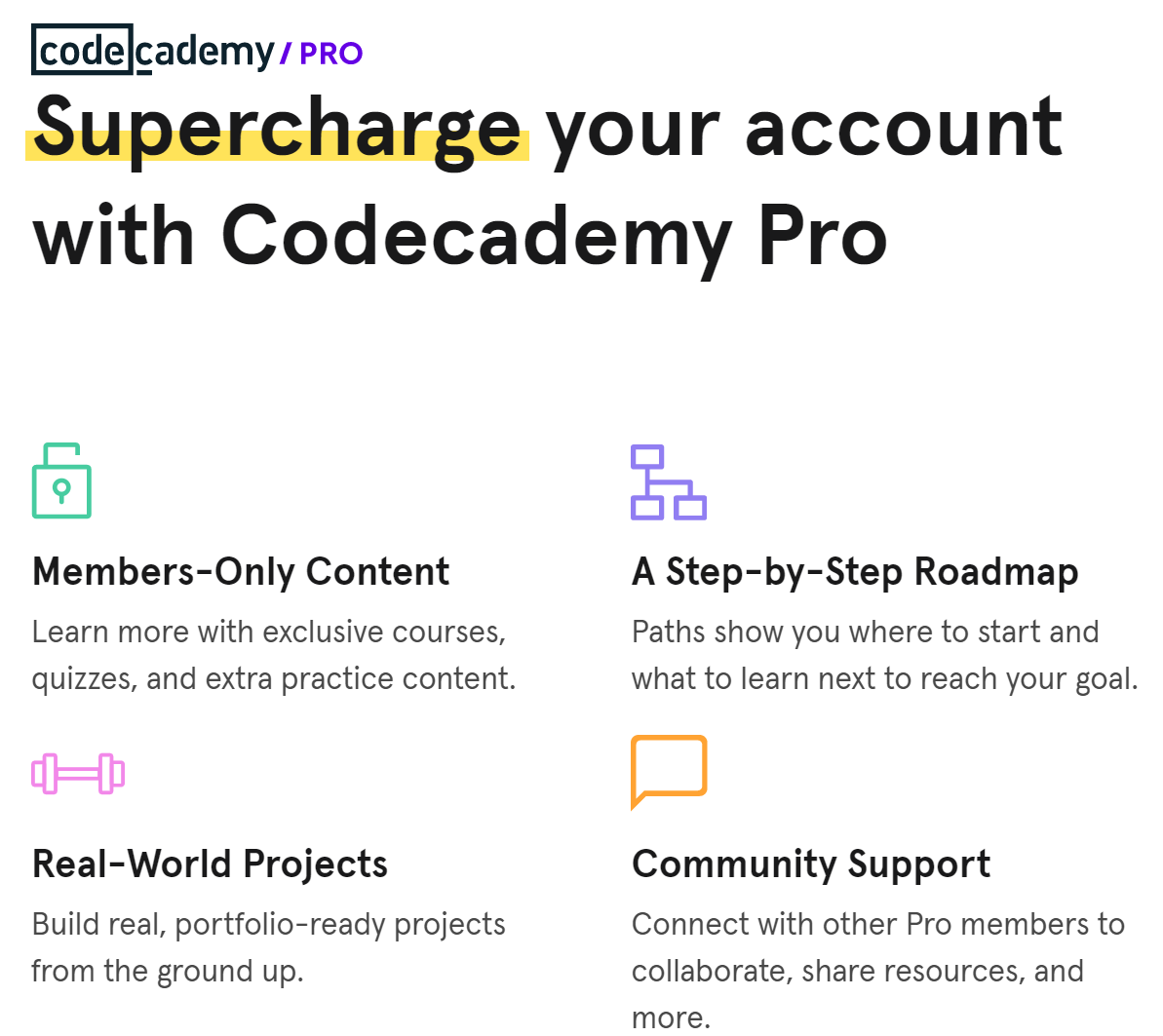 퀴즈 및 추가 학습 자료 이용, 학습 로드맵 제공, 커뮤니티 이용, 실전 프로젝트 만들기 코스는 추가 결제를 해야 이용할 수 있다고 합니다.