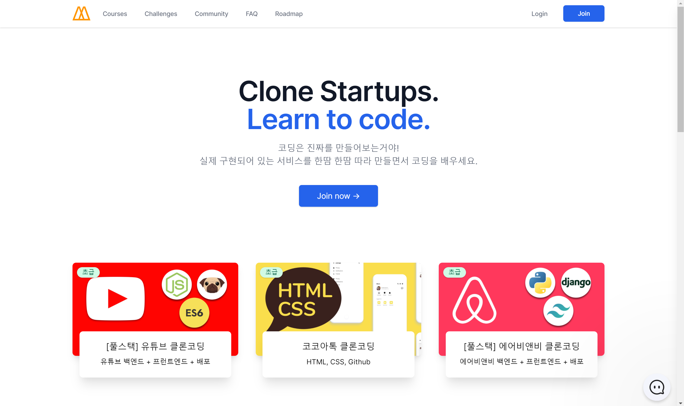 클론코딩류 강의의 특징은 이미 우리가 자주 사용하는 서비스들을 똑같이 따라 만들어 보며 코딩을 배울 수 있기에 느낄 수 있는 재미와 성취감이 다른 강의에 비해 비교적 높다는 장점이 있습니다.