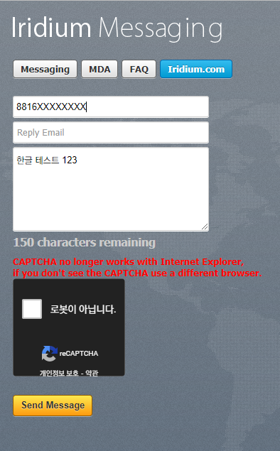 이외에도 이리듐은 자사 가입자 번호로 인터넷에서 무료로 문자를 보낼 수 있도록 하고 있으니 이곳을 이용하셔도 됩니다.
