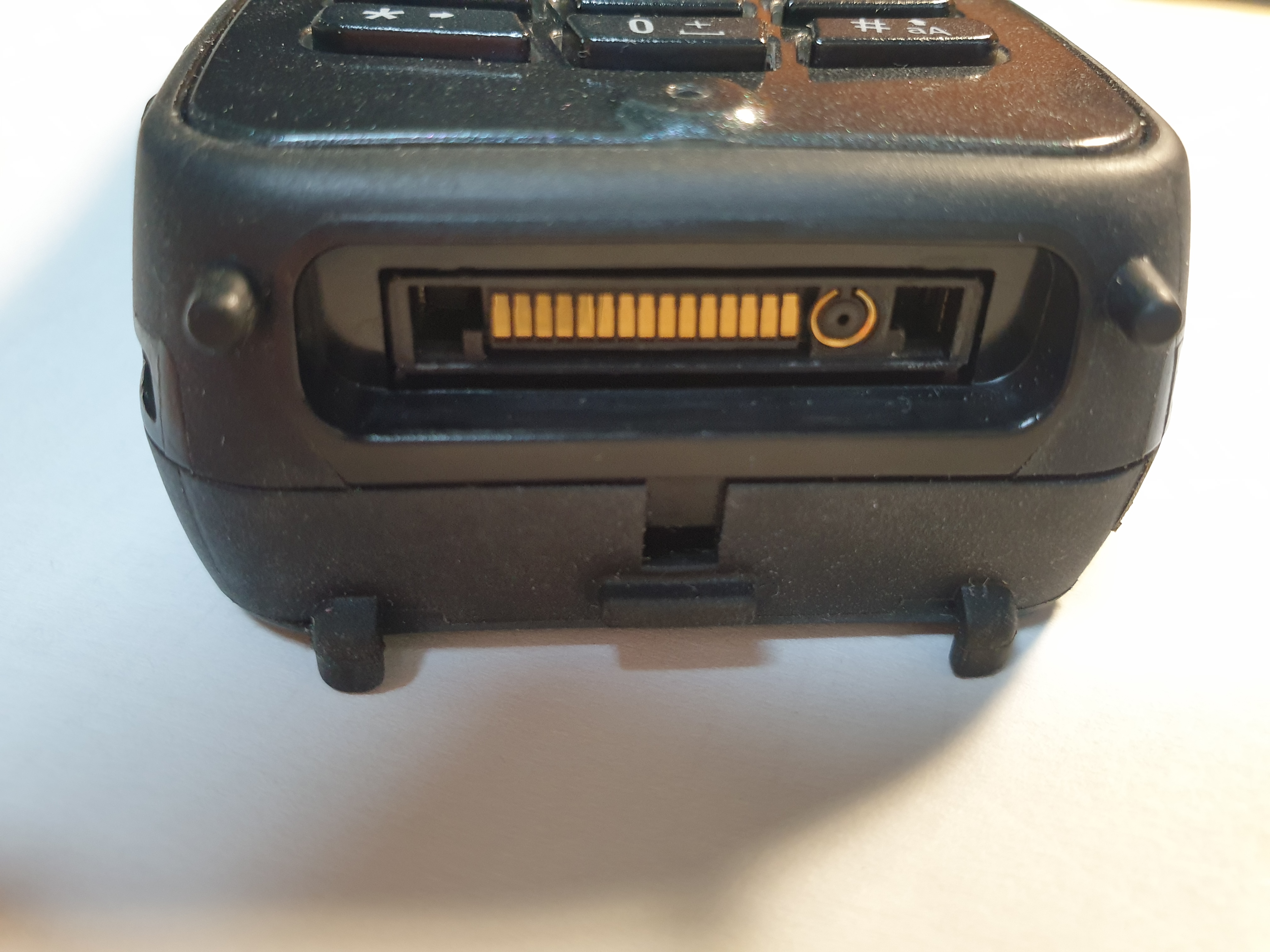 하단에는 충전기+USB+외장 안테나 연결 등을 위한 통합 단자가 위치합니다.