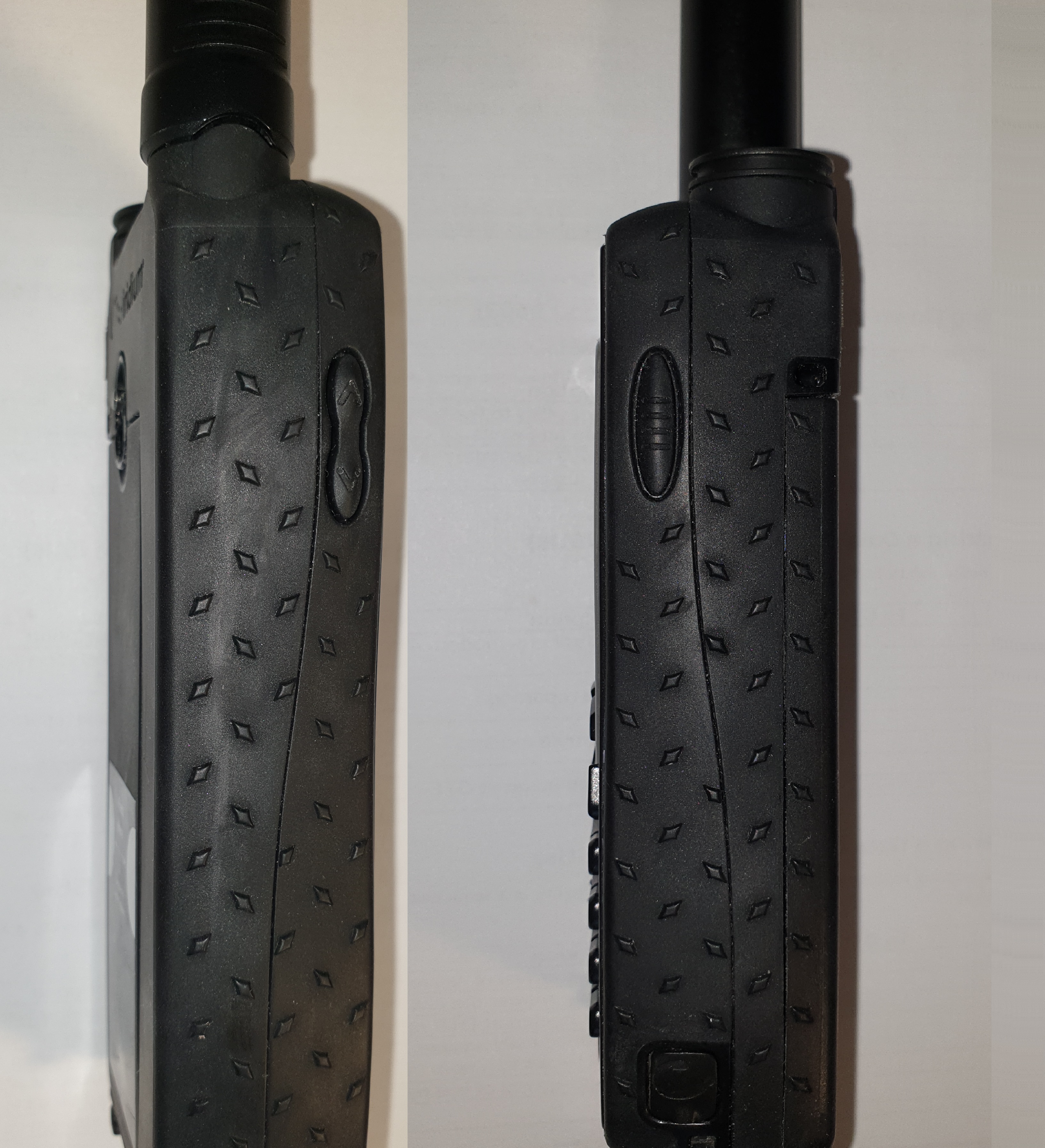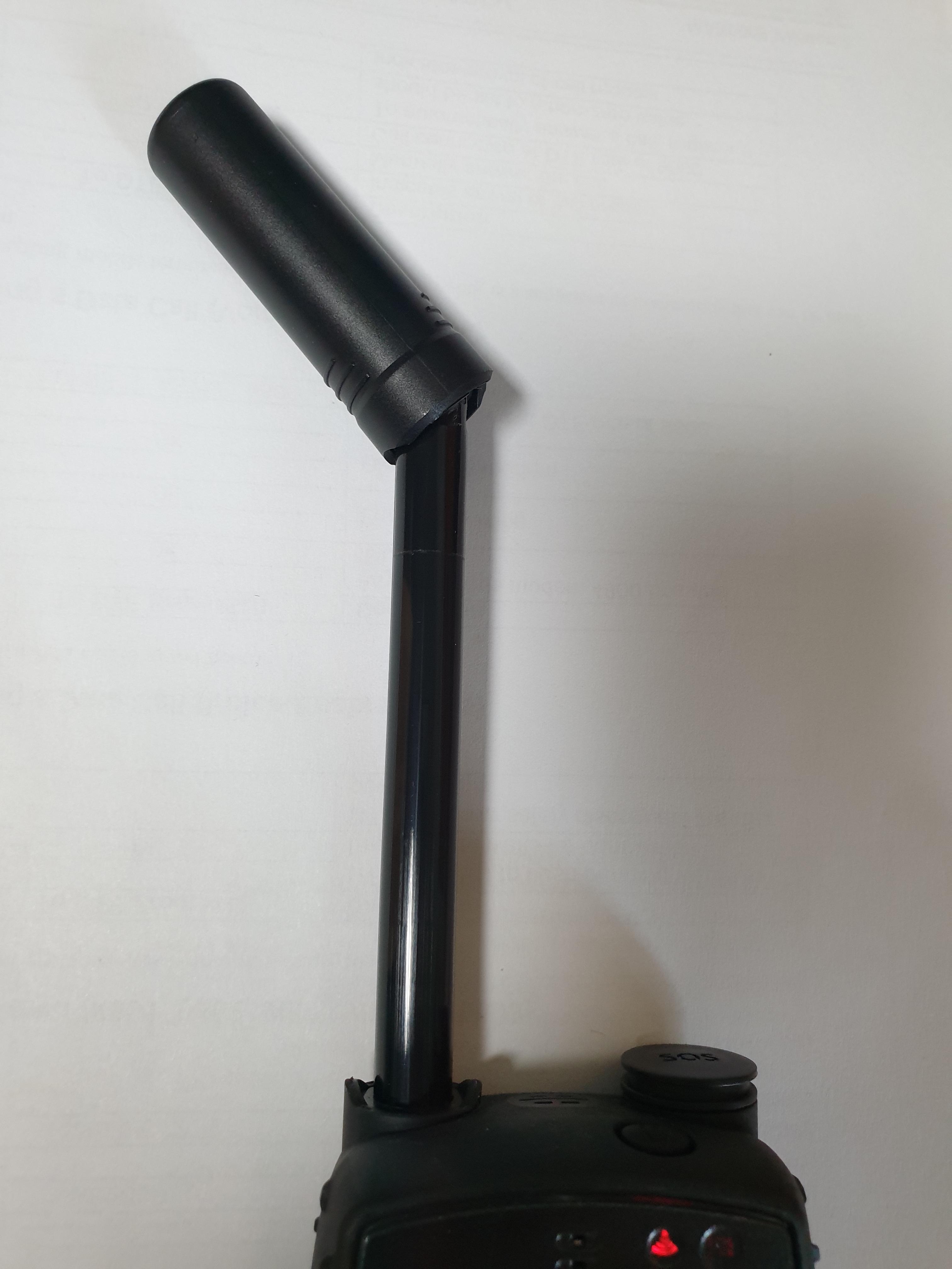 상단에는 안테나, 스피커, 전원 키와 SOS 버튼이 있습니다.