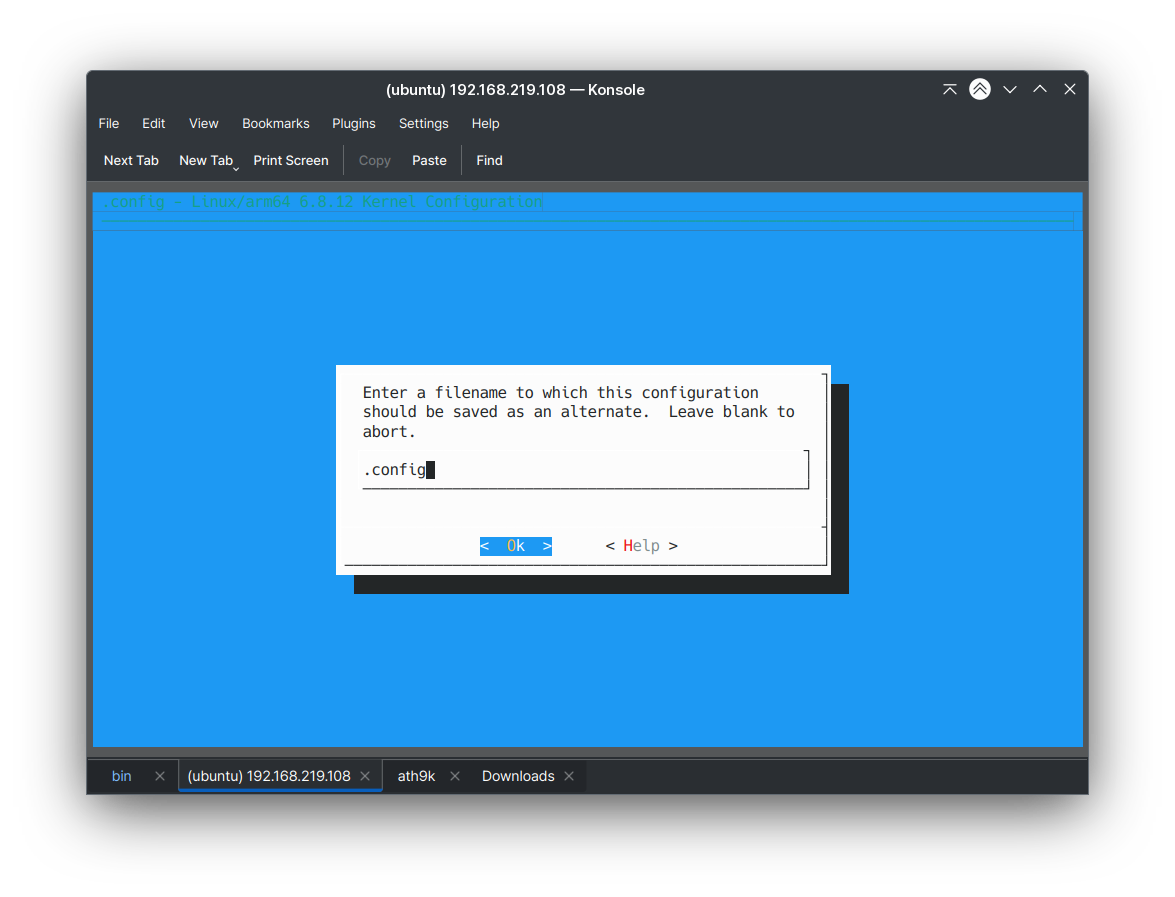 두번째 줄의 fakeroot debian/rules editconfigs를 실행하면 TUI 창이 뜰 것인데,