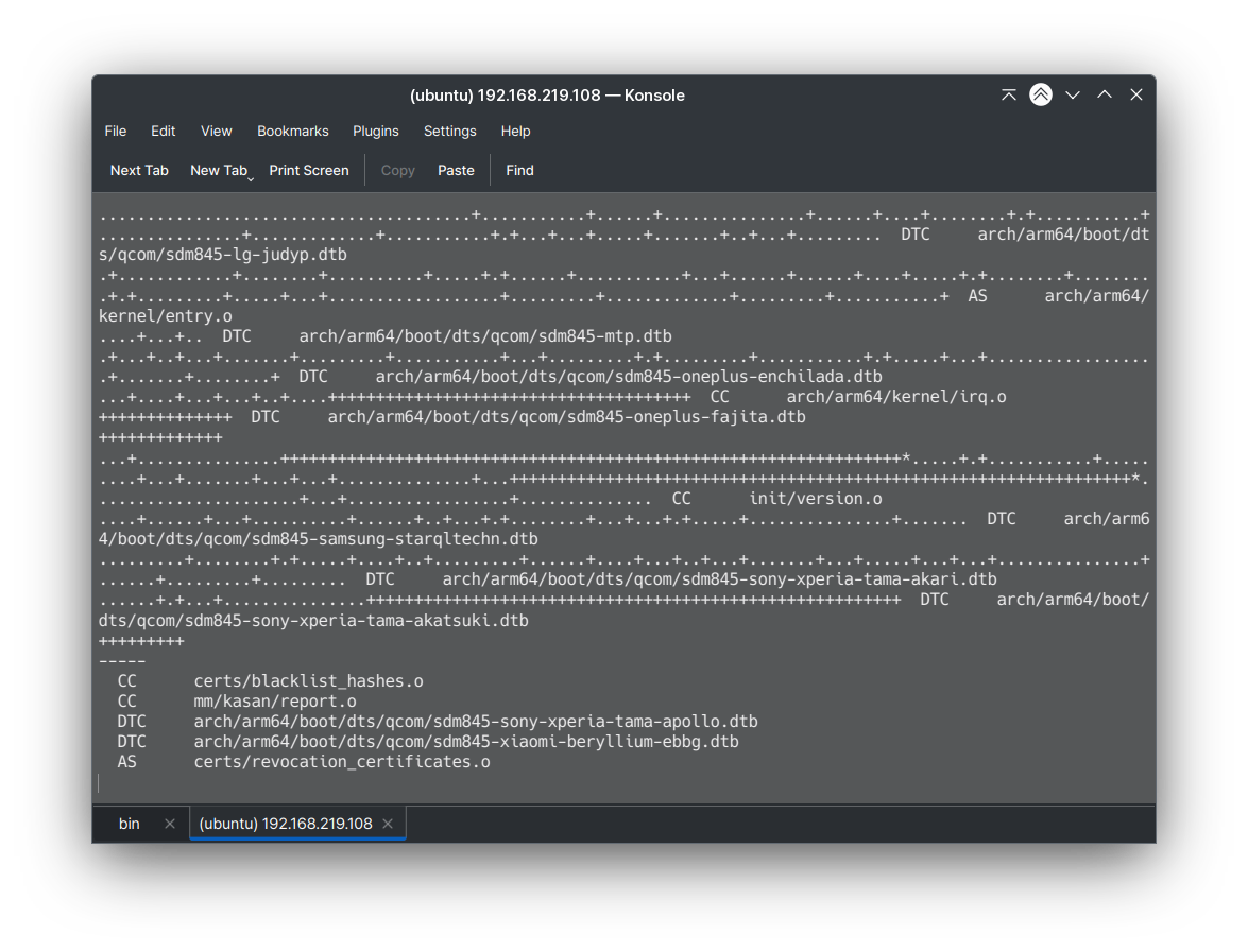 마지막으로 fakeroot debian/rules binary를 실행하면 커널 빌드가 시작된다.