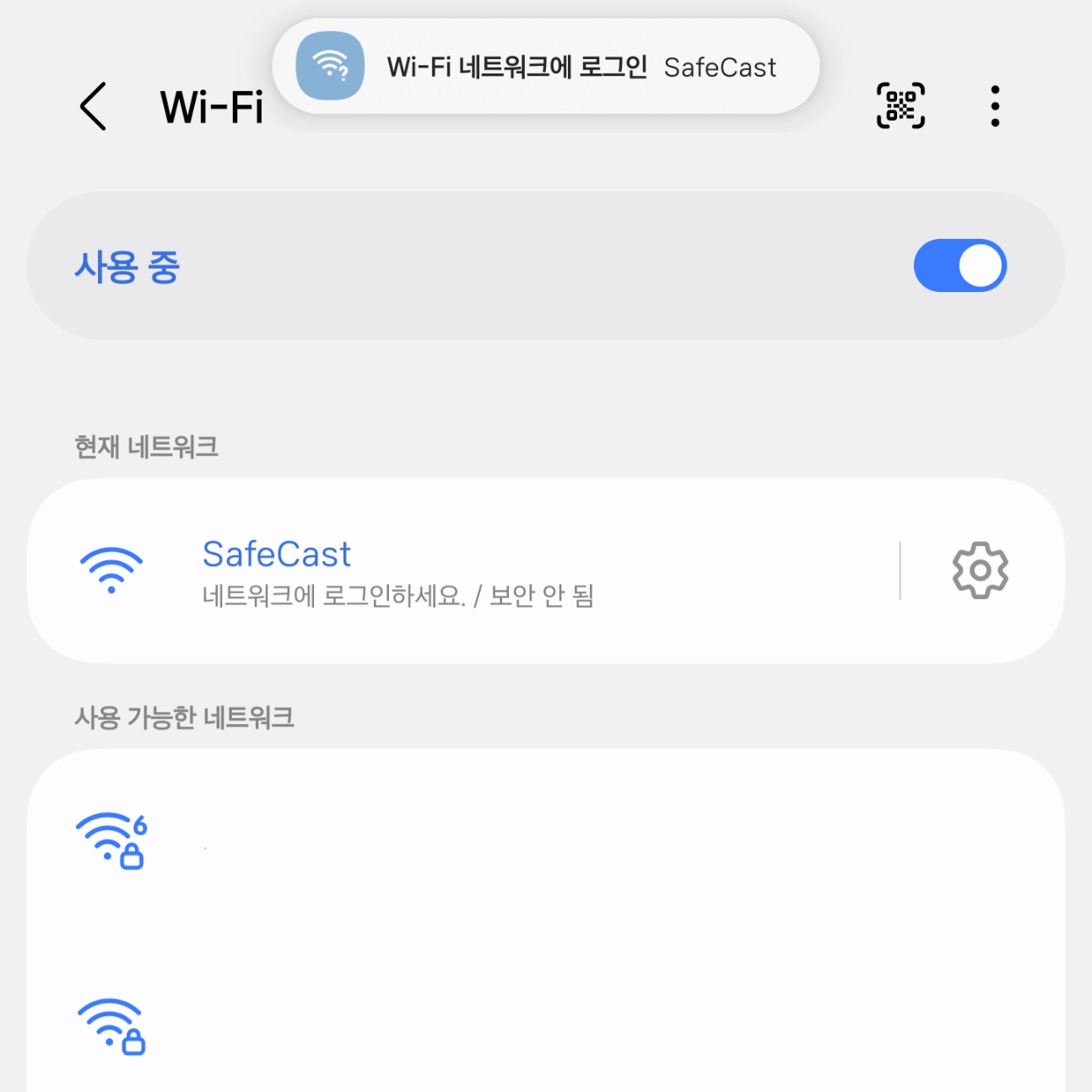 갤럭시 기준으로 네트워크 연결과 동시에 로그인 안내 및 알림이 표시되고, 알림을 누르면 웹뷰를 통해 포털에 접속이 가능한 것을 확인할 수 있었다.(페이지는 구현하지 않아 일단 포털 감지 동작만 확인)